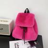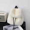 Solid Color Fake Fur Women's Backpack Fashi Large Capacity Plush Female Double Shoulder Bag Winter Girls Furry Tote Schoolbags
