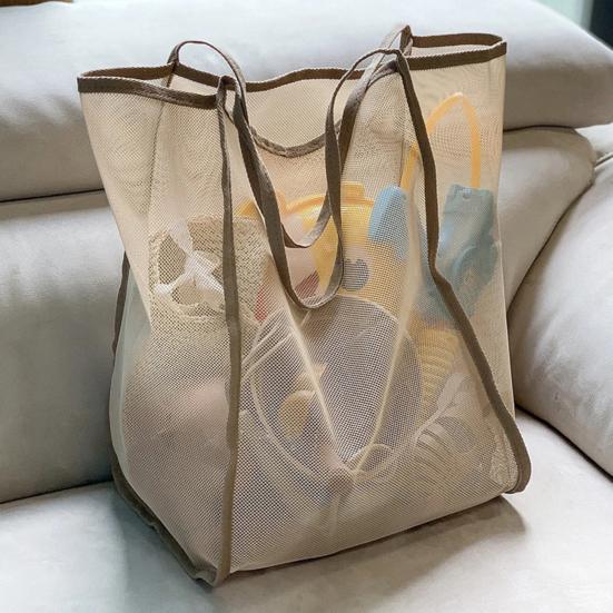 Malha Respirável para Praia e Piscina: O material de malha oferece respirabilidade excepcional, permitindo que fatos de banho e toalhas molhados sequem rapidamente sem reter humidade ou proliferar bactérias.. Areia e água saem facilmente, e um enxágue rápido o mantém limpo.. É mais resistente a manchas e mais fácil de manter do que as bolsas de lona, tornando-a ideal para praias arenosas, piscinas e atividades aquáticas.