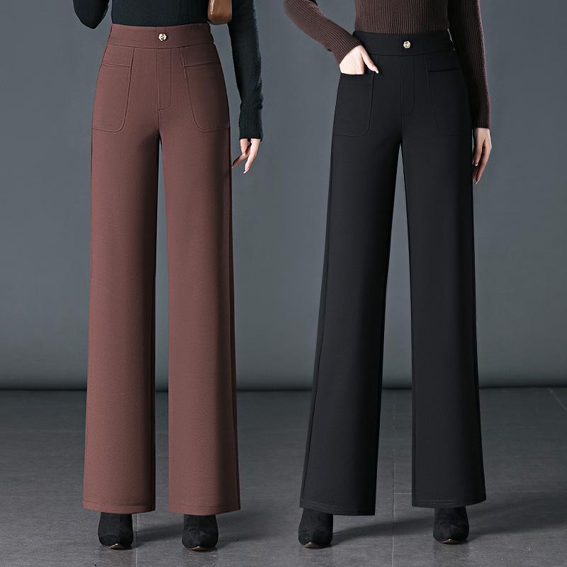 Discover the perfect blend of style and comfort with these plus-size, high-waisted wide-leg suit pants for women. Crafted from premium woven fabrics and durable nylon material, these pants offer a slimming and flattering fit. The high waistline design ensures a comfortable and supportive wear, making them perfect for both spring and autumn seasons. With a sportive touch, they are ideal for middle-aged mothers seeking elegance and ease in their everyday wardrobe. Whether for a day at the office or a casual outing, these pants provide effortless style and versatility.