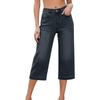 Capris Jeans Femininos de Cintura Alta Jeans Cropped Casual de Perna Larga Com Bolsos