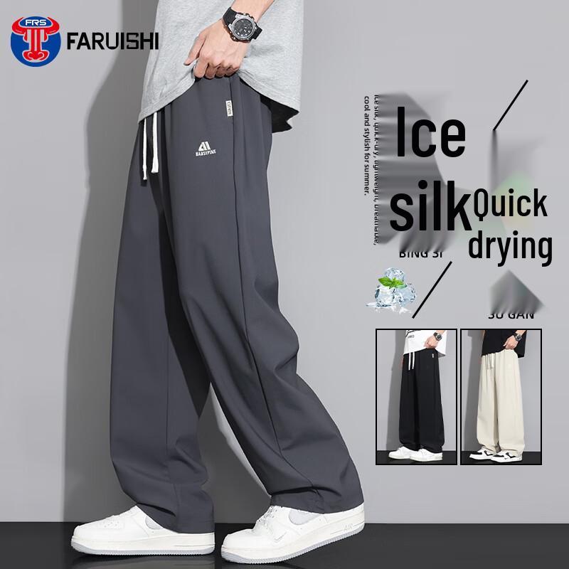 Faruishi Men's Ice Silk Wide-Leg Pants