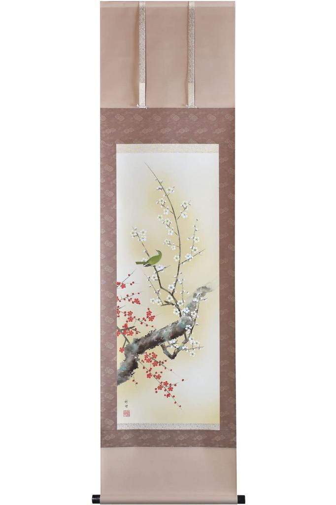 Sunny Town Gallery Hanging Bird and Flower Spring Red and White Plum Blossoms and a by Takeyo wide x 164cm high Scroll, Painting, Hanging,
