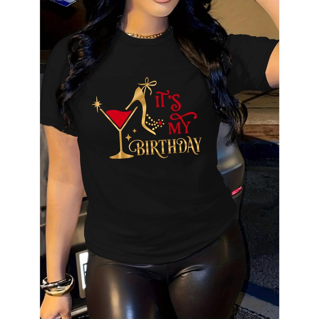 letter Pattern print t-shirt short sleeve crew neck casual top for summer & spring women's clothing