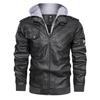 Jaqueta masculina casual de couro sintético com gola alta e zíper para motocicleta com capuz removível, jaqueta vintage à prova de vento com vários bolsos para homens