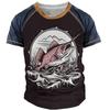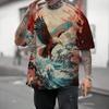 Camiseta casual masculina com blocos de cores, estampa 3D, gola redonda, manga curta, camiseta grande, roupas masculinas, tops, streetwear, verão