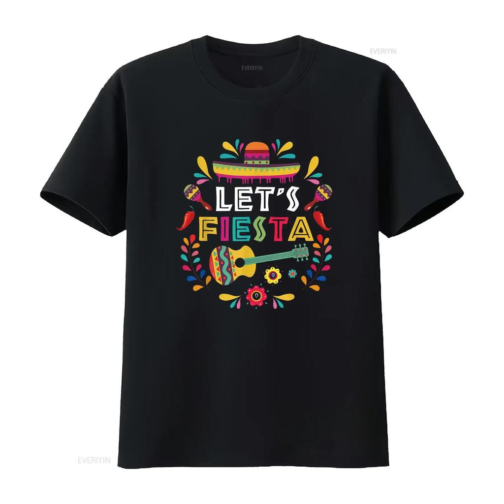 Lets Mexican Fiesta Cinco De Mayo Party Colourful Guitar Fun T Shirt vintage Washed Stretched Breathable Unisex fashion homme