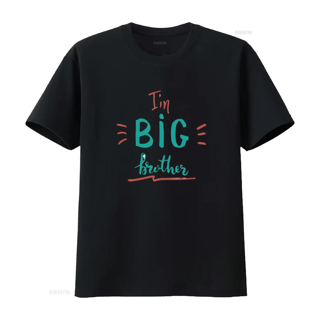 Mens I M BIG BROTHER Classic T Shirt Black vintage Washed Stylish Versatile Slightly streetwear Stretched homme