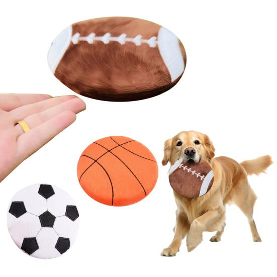 Brinquedo para Cão Bola Plana Disco Voador Macio de Pelúcia Brinquedo Mastigável com Apito Bola de Futebol Basquete Rugby Brinquedo de Buscar para Filhote Alívio da Ansiedade da Dentição Brincadeira Interativa