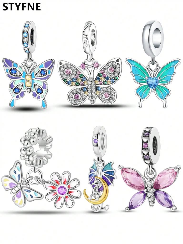 Charm Beautiful Plata Colorful Butterflies Bead For Charm Originales Bracelets Bead Jewelry Crafting WomenS Gifts