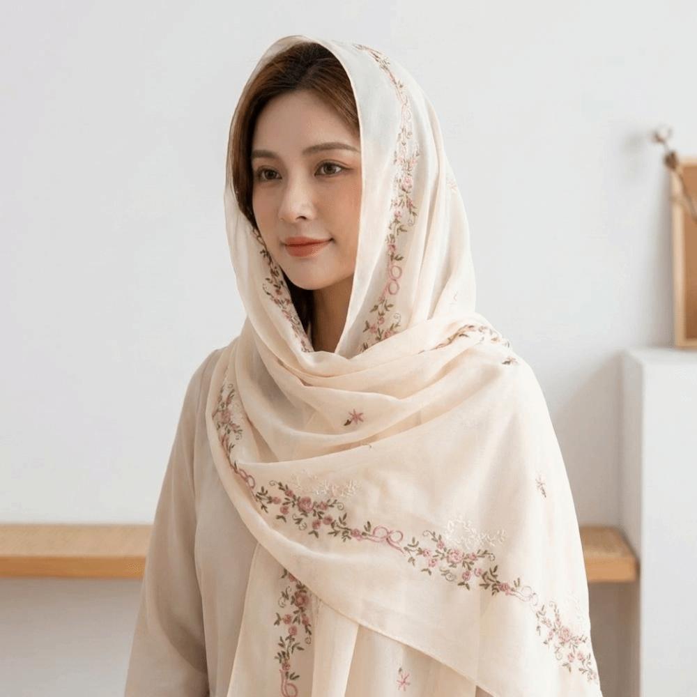 Long Hijab Scarf Cotton Thin Shawl Fashion Floral Headscarf Vacation