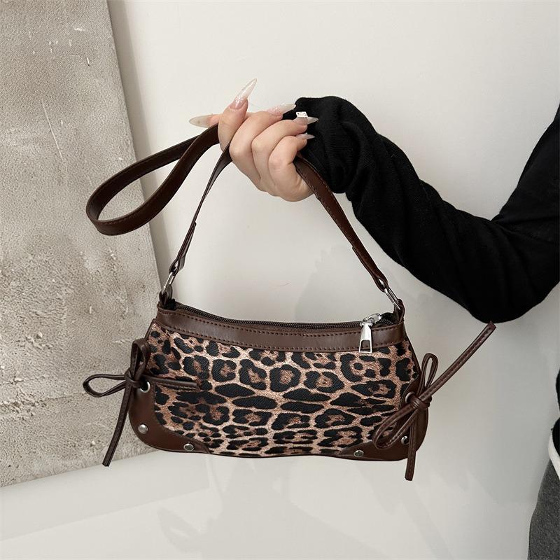 Bag Ladies Fashion 2 New Bow Leopard Print One Shoulder Portable Underarm Bag Fashion Popular Bag