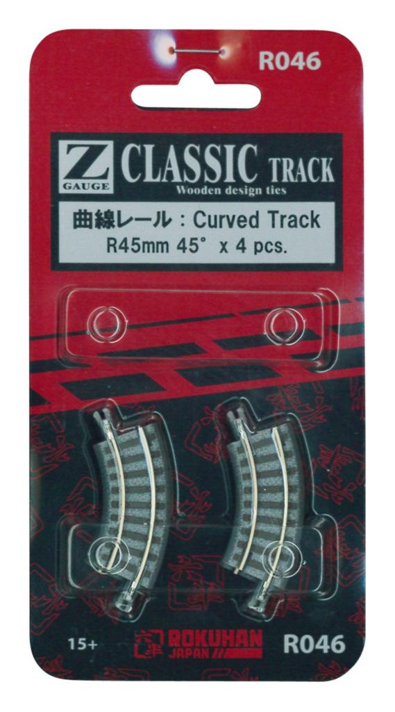 Rokuhan Z Gauge R046 Curved Rail R45 Set of 4 (45 degrees) -