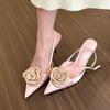 2026 Mid Heel Elegant Solid Color Pointed Toe Flower Decoration Pumps Slingbacks Ladies High Heels Shoes Female Slides Sandals