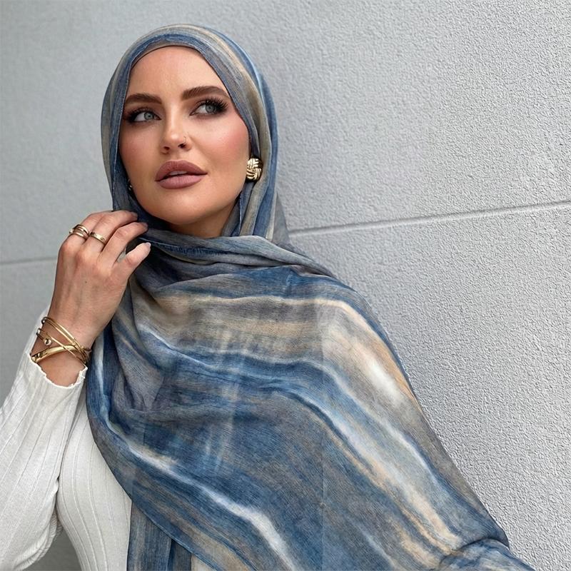 Ramadan Watercolor Modal Hijab Women Bohemian Watercolor Soft Muslim Hijabs Floral Breathable Shawl Wrap Scarf Headscarf Warm