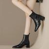 2026 NEW Women's New Autumn/Winter Square Headed Genuine Leather Sheepskin Elastic High Heels Large Calf Short Boots