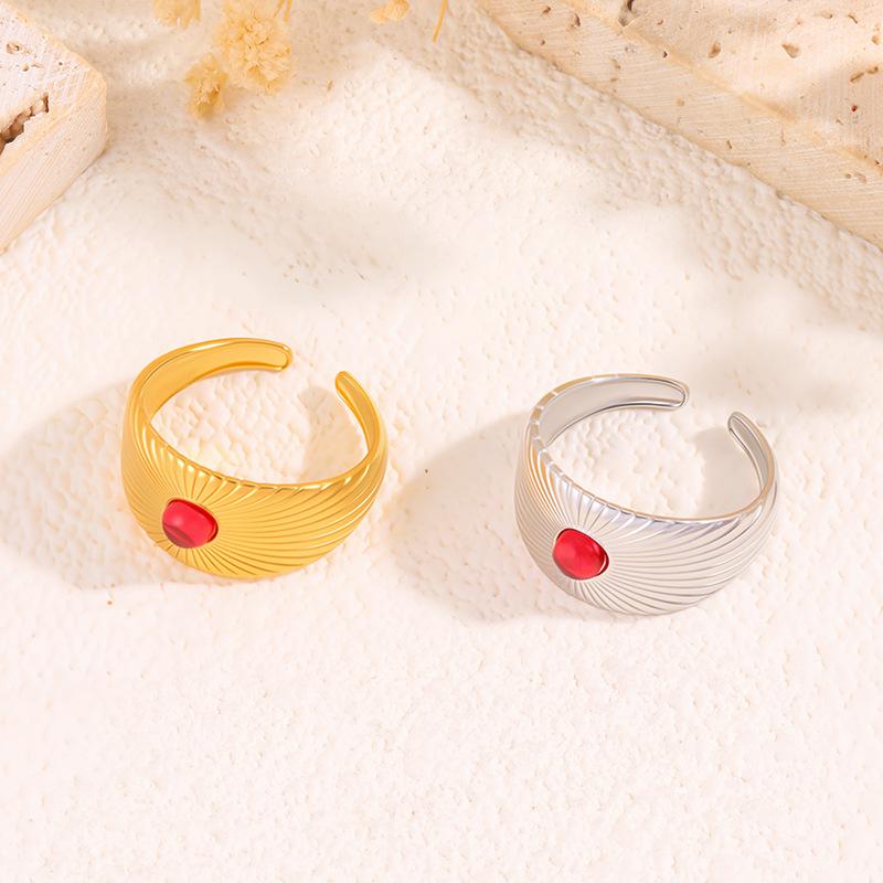 Titanium Steel Open Ring for Women, Natural Stone Inlay, Fashionable Scratch-resistant Finger Ring