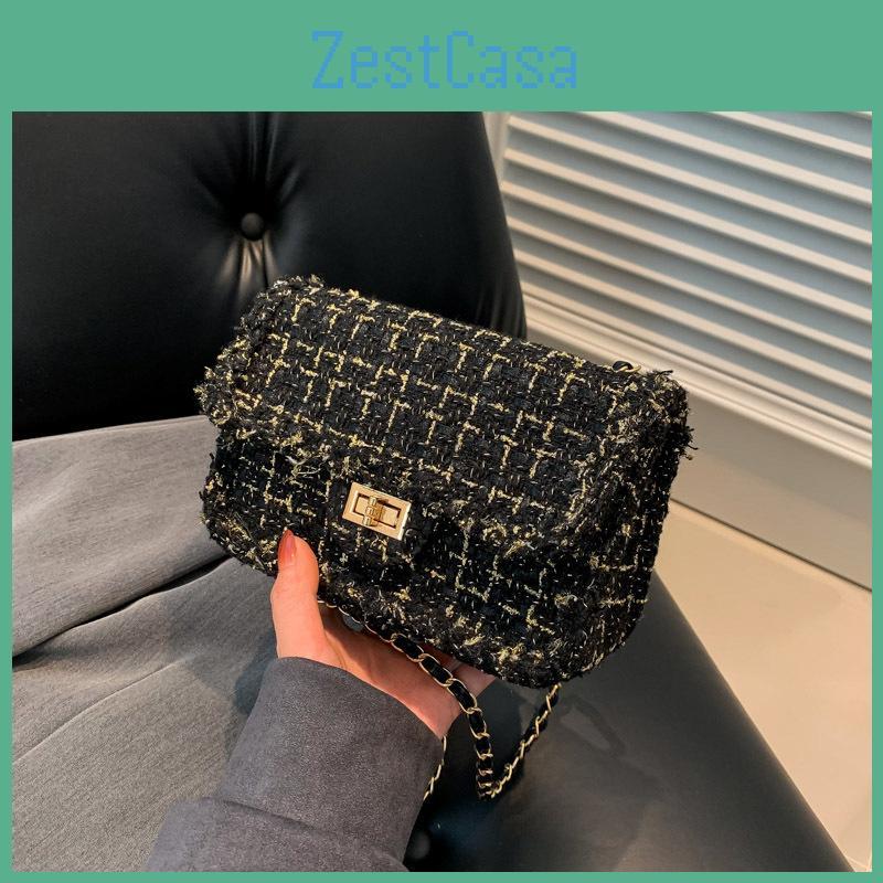 Bolsa Transversal Tweed Chic Outono Inverno 2023 Nova Moda Trendy Xadrez Corrente