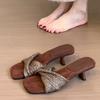 Summer Retro Woven Slippers Women Slingback Slide Female Square Toe Simple Designer Women Fine with Flip Flops Chanclas Mujer