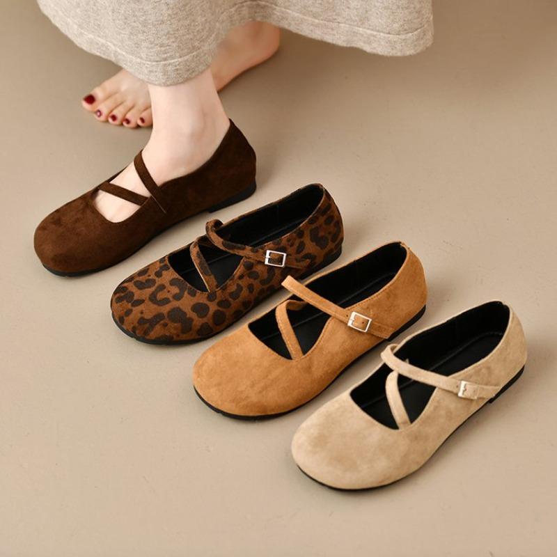 Designer Elegant Buckle High Quality Suede Brand Ballet Flats Women Cozy Round Toe Shallow Mary Jane Shoe Women's Tabis Shoes