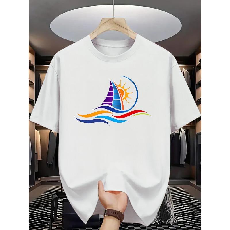 Summer Men's Fashion Pattern Short Sleeve T-Shirt with Letter Print , Oversized, Cool