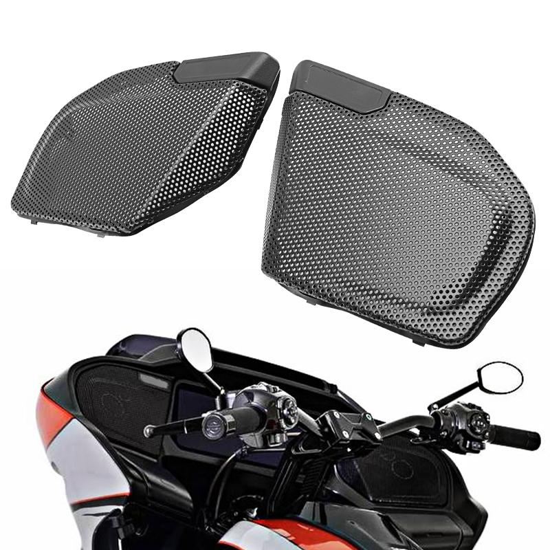 Grelhas de Alto-falante Laterais Pretas para Motocicleta Tampa de Buzina Malha de Acabamento Para Harley Touring CVO 112 117 Road Glide Street Glide 2026 2026 2026