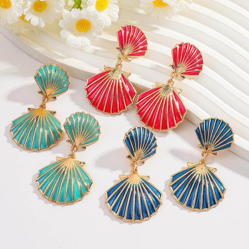 Ocean shell enamel earrings personality fashion double-sided shell earrings literary retro versatile everyday earrings
