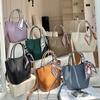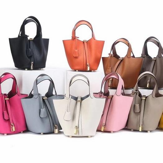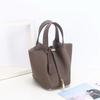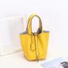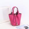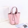 2026 new first-layer lychee pattern leather bucket bag European and American brand fashion gold buckle cowhide vegetable basket women's bag