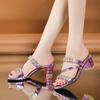 Verão Novas Sandálias e Chinelos Femininos com Salto Médio Salto Grosso Chinelos Femininos com Biqueira Aberta Salto Alto Strass