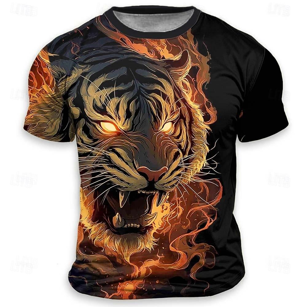 Men's Animal Tiger Funny T Shirt Short Sleeve T shirt 3D Print Crew Neck Shirt Exaggerated Designer Party Holiday