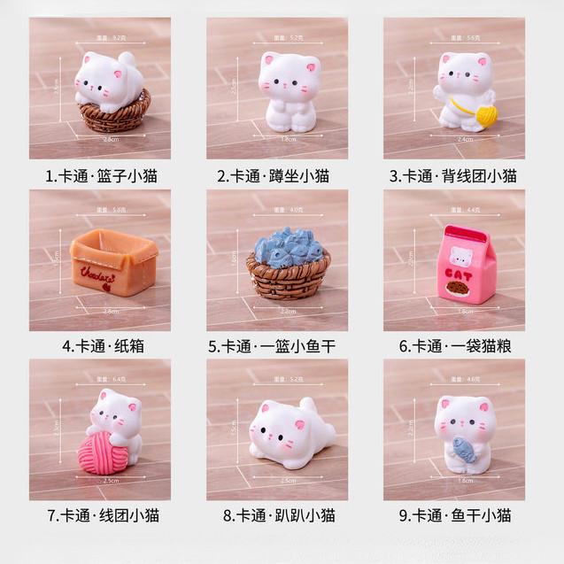 9Pcs/set Cartoon Cat Animal Miniatures Diy Resin Ornaments Fairy Garden Decoration Moss Terrarium Micro Landscape