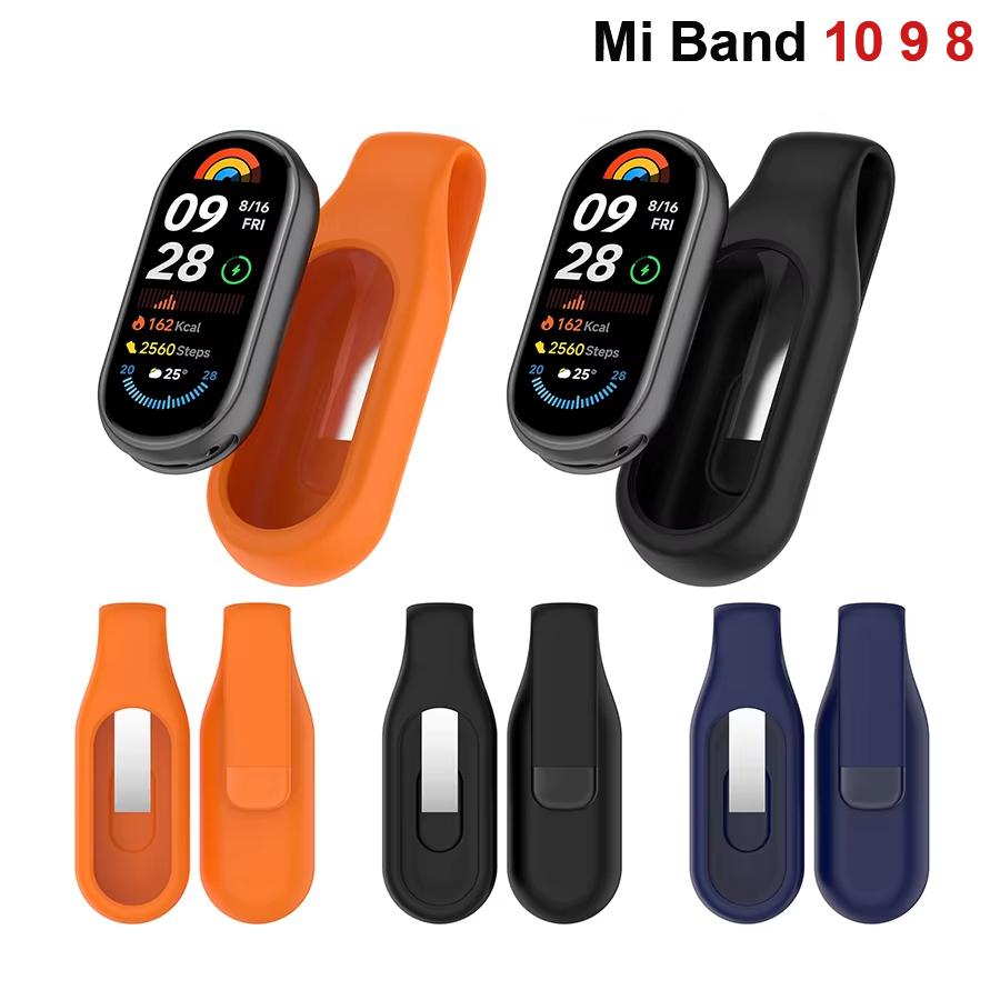 Silicone Storage Case Clip for Mi band 8/9/10 Series sport Protective Case with Steel Clip Closure xiaomi smart band 10 9 cover