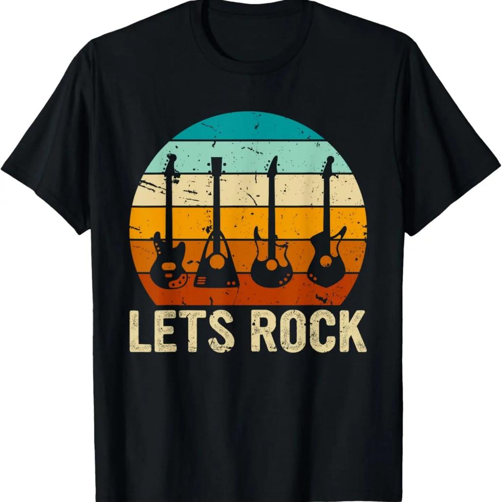 Vintage Retro Lets Rock Rock and Roll Guitar Music T-Shirt