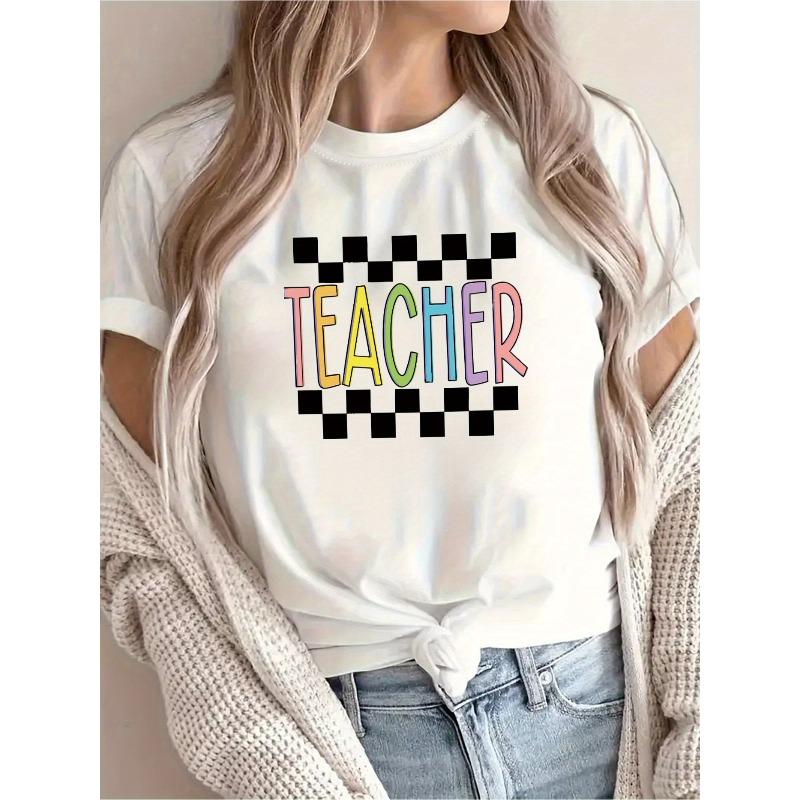Newly Recommended Teacher-Themed Printed T-Shirt, Casual for Women, Suitable for Vacations, Short-Sleeved with A Round Neck,