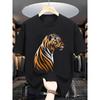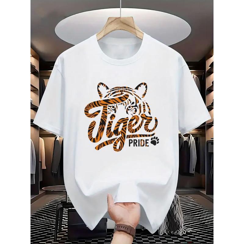 Tiger Pride, Tiger Print T-Shirt, Classic Black And White Round Neck Short Sleeve Shirt, Suitable for Home Wear, Casual Outings, And Outdoor Sports
