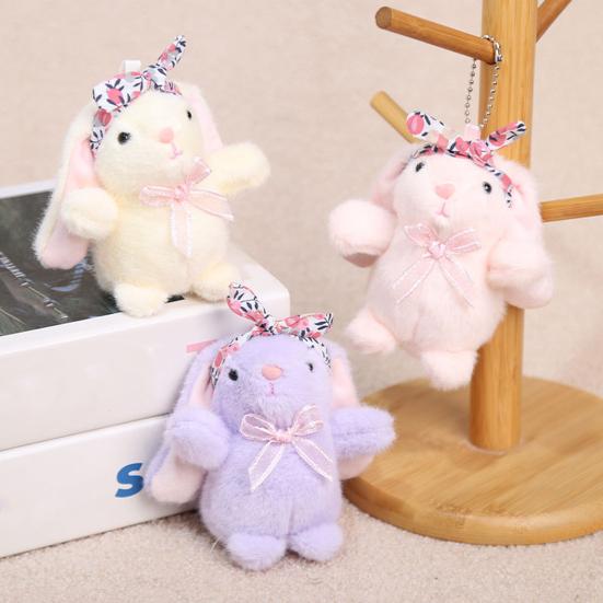O pingente exibe um charmoso coelho de orelhas caídas adornado com um laço de dupla camada no pescoço e uma tiara floral, criando uma vibe pastoral fresca que é ao mesmo tempo elegante e fofa.. Disponível em cores macaron suaves como rosa, roxo e amarelo, este acessório leve é perfeito para presentear ou para uso pessoal.