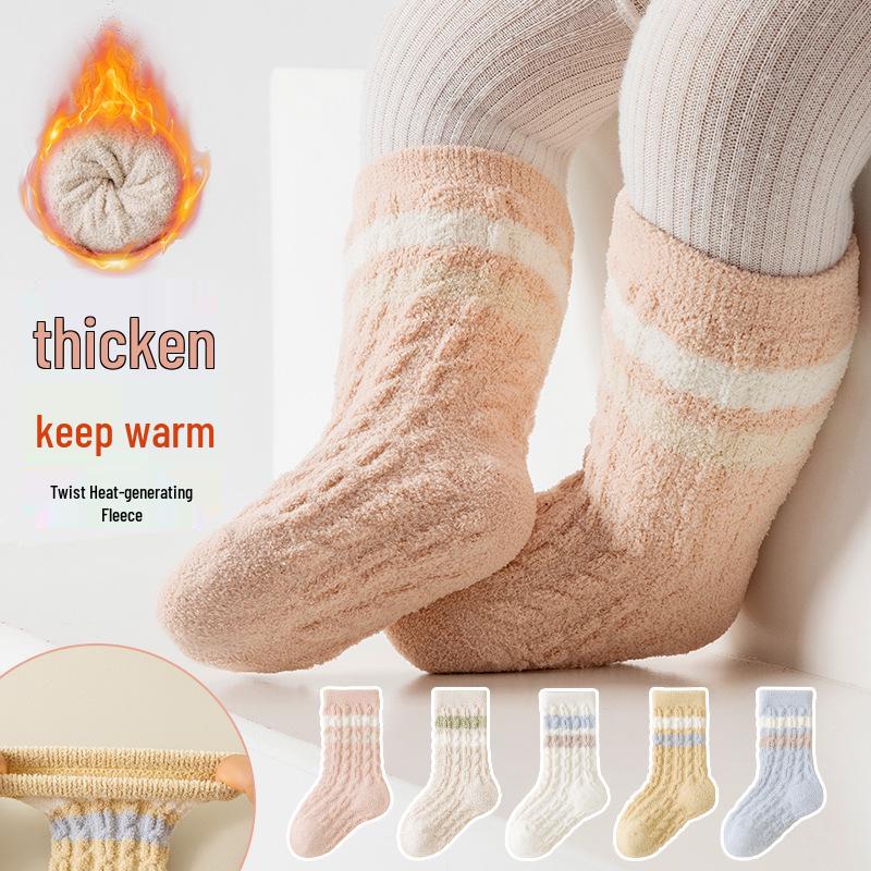 Autumn & Winter Plush Non-Slip Socks: Unisex Infant & Toddler Mid-Calf Indoor Walking Socks