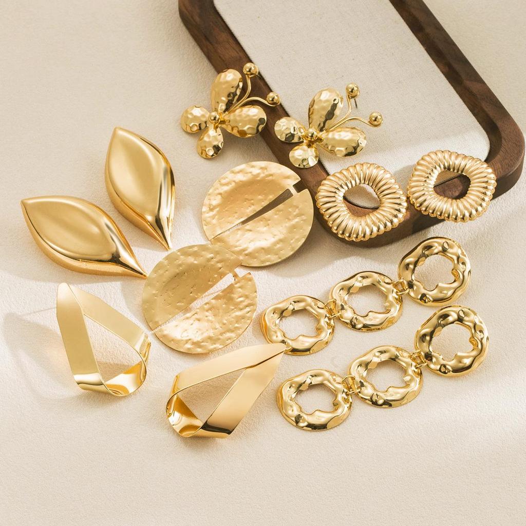 Geometric Irregular Butterfly Metallic Stud Earrings with Retro Hollow Design