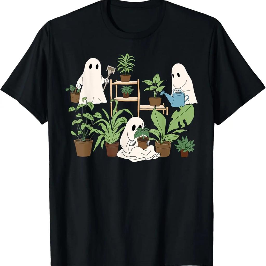 Cute Ghost Plant Lady Halloween Spooky Gardener Gift Women T-Shirt