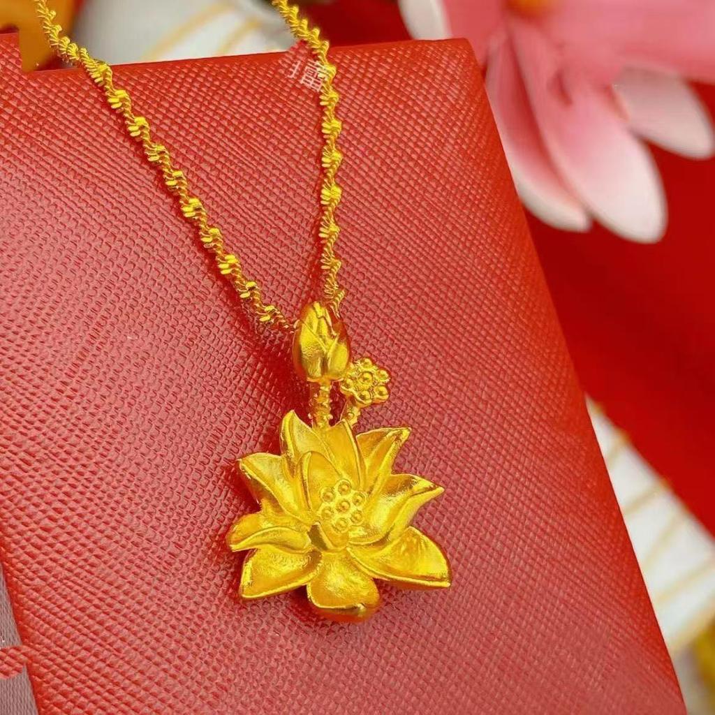 Elegant Lotus Flower Necklace - National Tide Style with Water Wave Chain