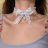 Gargantilha Lolita para Meninas com Pingente de Coração de Amor em Renda e Pedras, Correntes de Colar para Cosplay, Acessórios de Joias Dançantes para Festa de Casamento