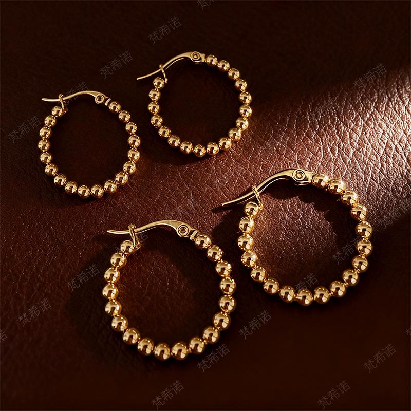 Elegant Stainless Steel Geometric Flower Bead Earrings