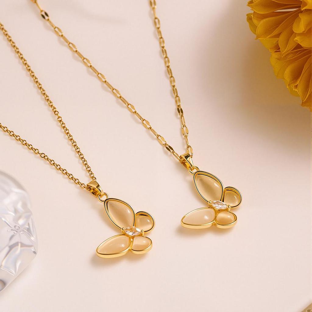Elegant Crystal Cat Eye Butterfly Copper Pendant Necklace for Women - Niche Light Luxury Design, Tarnish-Resistant Clavicle Chain