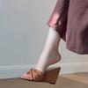 Chinelos femininos retrô franceses de tecido com salto plataforma e bico aberto 2025 novos para lazer, férias, praia, de salto alto, frescos