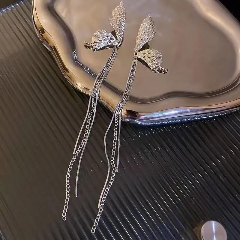 925 Sterling Silver Long Tassel Butterfly Earrings for Women - High-End Metallic Cool Style