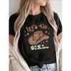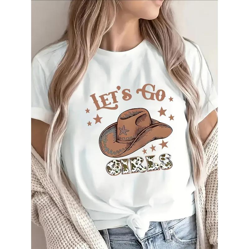 Lightweight and durable short-sleeved T-shirt for women, featuring a fun Western cowboy hat design. It's perfect for casual outing