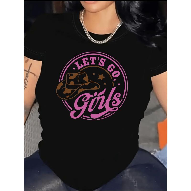 Y2K Western Cowboy Hat with Letter Graphic - Fashion Round-neck Sports Short-Sleeved T-Shirt - Women's Sports Outfit