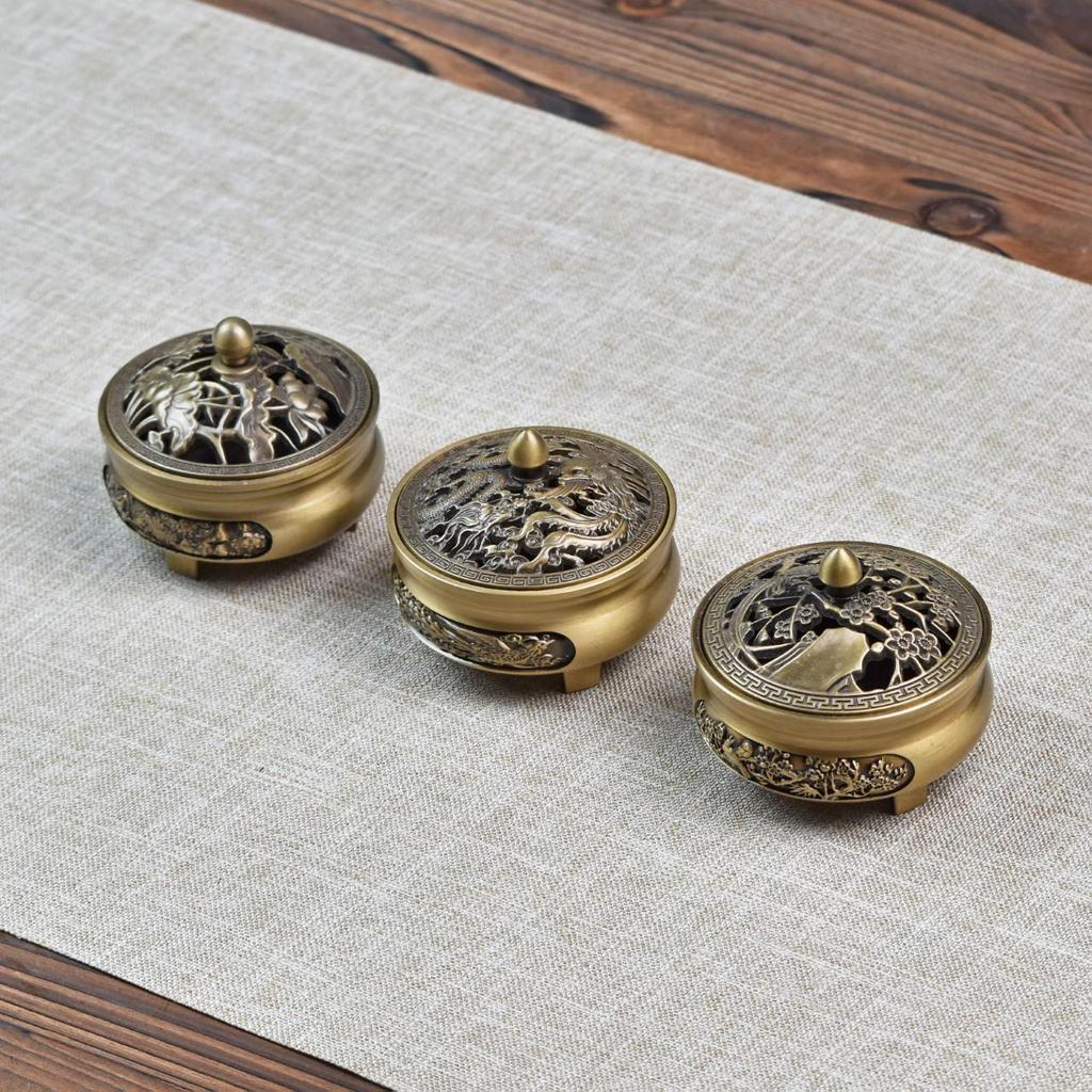 Alloy Creative Retro Incense Burner: Dragon Phoenix Lotus Leaf Style for Sandalwood & Agarwood Incense Coils