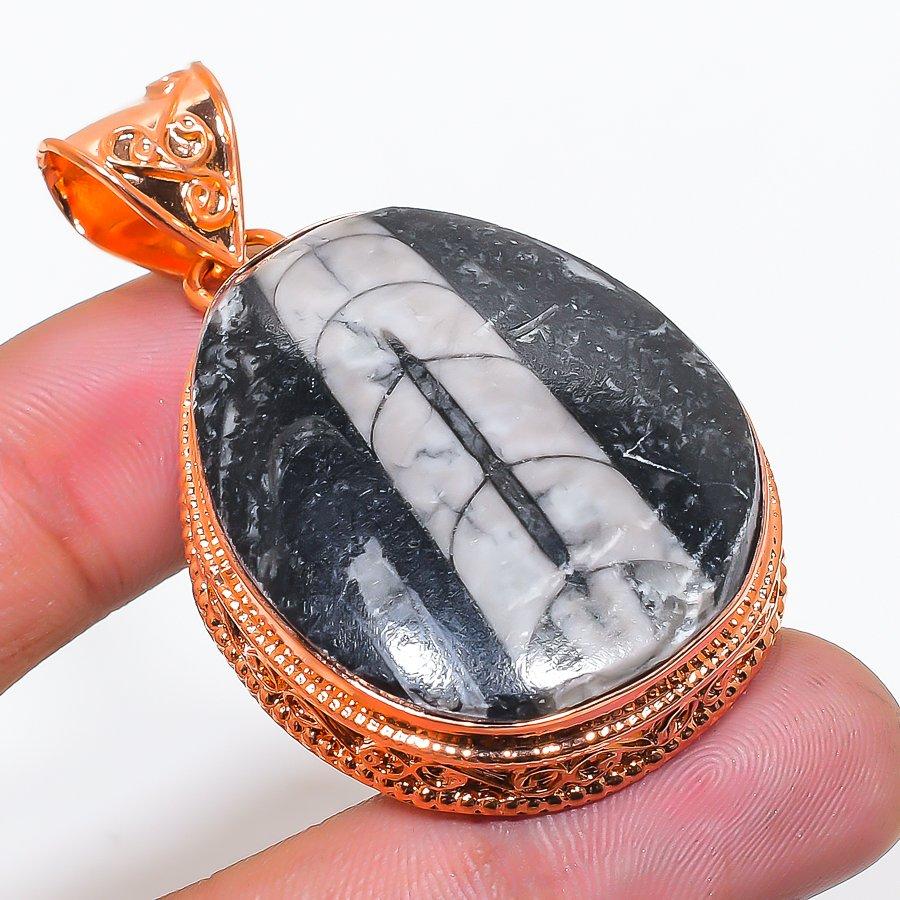 Natural Orthoceras Fossil Gemstone 925 Sterling Silver Pendant 2.21" AP-14398