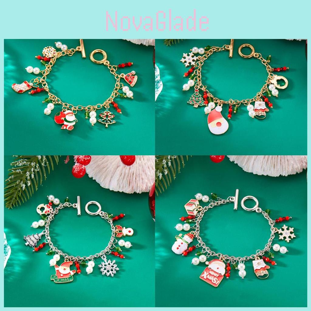 Pulseira de Charme de Natal Para Mulheres Com Pingente de Floco de Neve Veado Papai Noel Feita à Mão