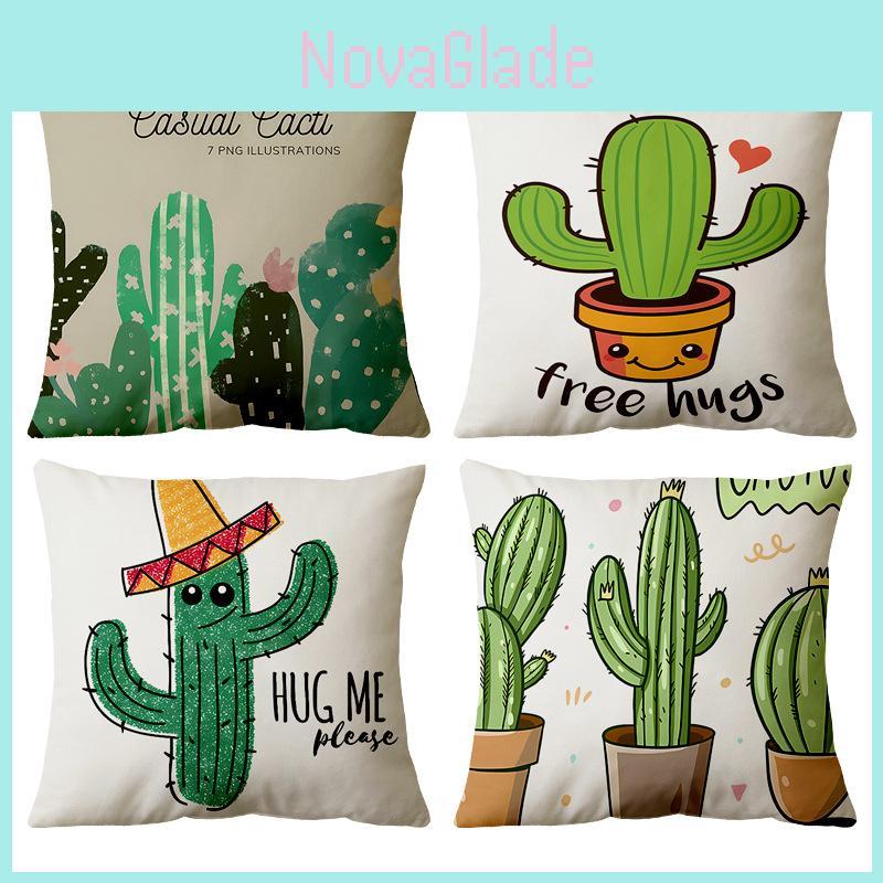 Cartoon Cactus Pattern Pillow Cover For Home Decor And Lounge Relaxation